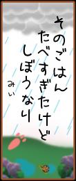 このあと、すてぃっちちゃんは相当おかんむりのようで、呼びかけには一切答えてくれなくなって、ウロウロしてたよ・・・みぃも相当へこんでいる・・・なんか一人で意味不明は俳句を詠んでいる・・・
